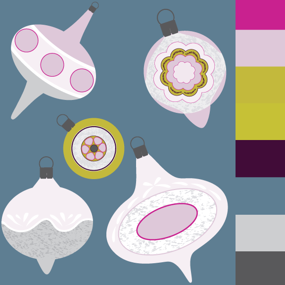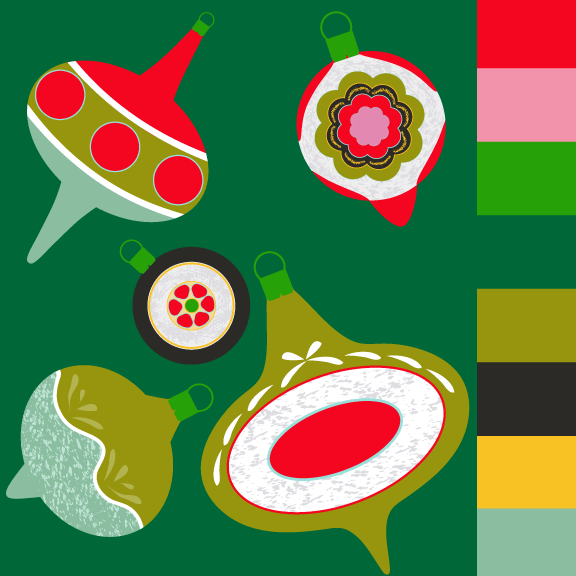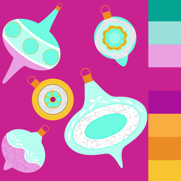 But first, I had to come up with a color combo. I started with this retro color palette and thought I’d leave it at that. Color always trips me up. There are just too many possibilities. I’ve been working on limiting my palettes, trying to confine myself to no more than 8 colors, then I expand that to 13, then the next thing I know I’ve got a design with 32 colors in it!