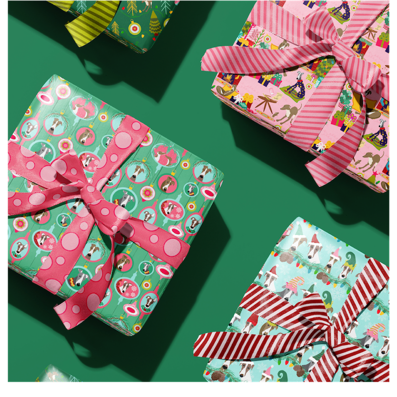 Currently, I have this little mini collection of Whippet-inspired holiday fabric available in my Spoonflower shop. Spoonflower offers many varieties of fabric with your choice of designs by thousands (?) of independent artists – there’s something for everyone there. And if sewing from scratch isn’t your thing,, you can purchase ready-made items with your choice of design as well.