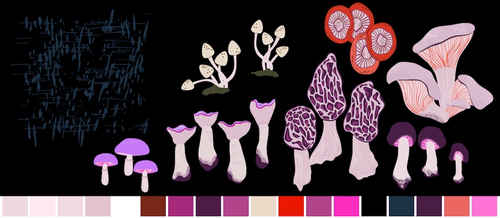I made these little mushroom motifs because I thought it would be fun to practice my drawing skills in Illustrator after being away from it for so long.