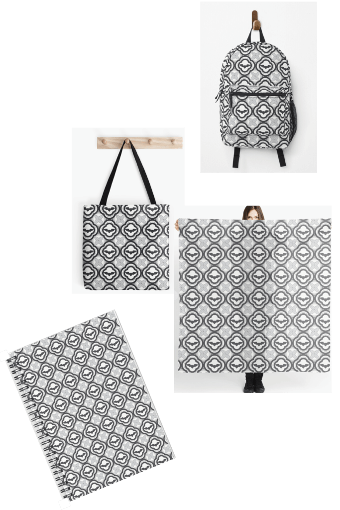 Recently, I decided to revisit the quatrefoil. I really wanted a better idea of what it would look like on products so I uploaded it to my Redbubble shop and was quite happy with the mockups. I haven’t ordered anything yet, as I’m currently waiting on another order to arrive.