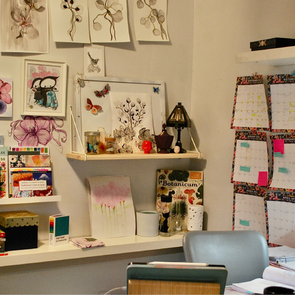 I tend to rearrange this space when I am trying to avoid work, or when I start a new project. And by project, I mean another class, because let’s face it – that is all I’ve been doing; class after class. At some point, I need to put all this learning into action. Perhaps 2024 will be the year I make it happen. But, first I’ll have to completely rearrange my space, which could take a while.