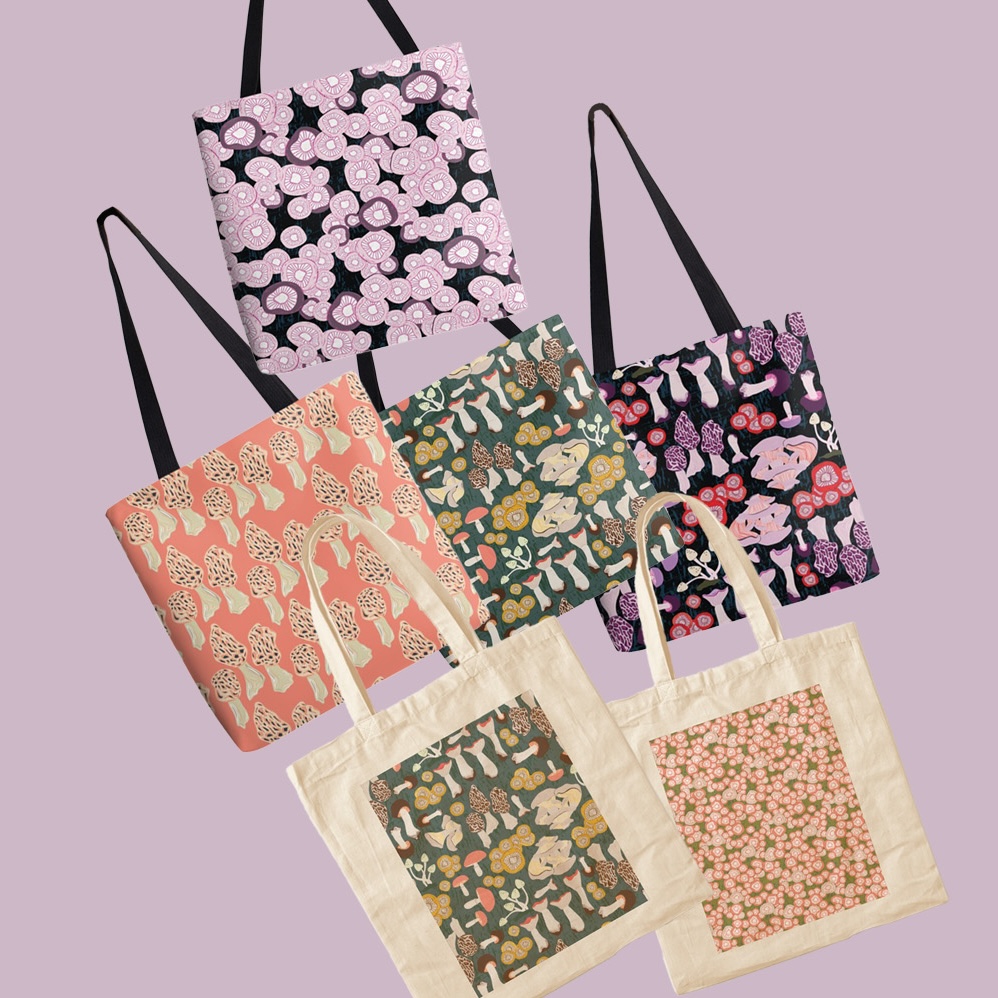 You can find my illustrator work as patterns for fabric collections on Spoonflower and on various home decor items, bags, stickers, tech accessories, and more in my Red Bubble shop. Click on the green bars or photos for the links!